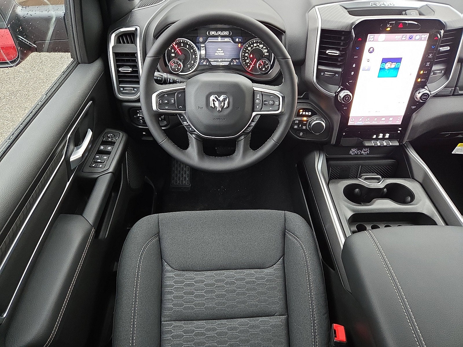 Many rewarding details are standard in our Big Horn cabin, starting with comfortable cloth heated front seats, a heated leather-wrapped steering wheel, air conditioning, a RAM Clean-Air System, keyless access, push-button ignition, cruise control, door-sill scuff plates, and clever cargo space. The 5-inch touchscreen features voice control, Bluetooth®, and a six-speaker sound system for intelligent infotainment.