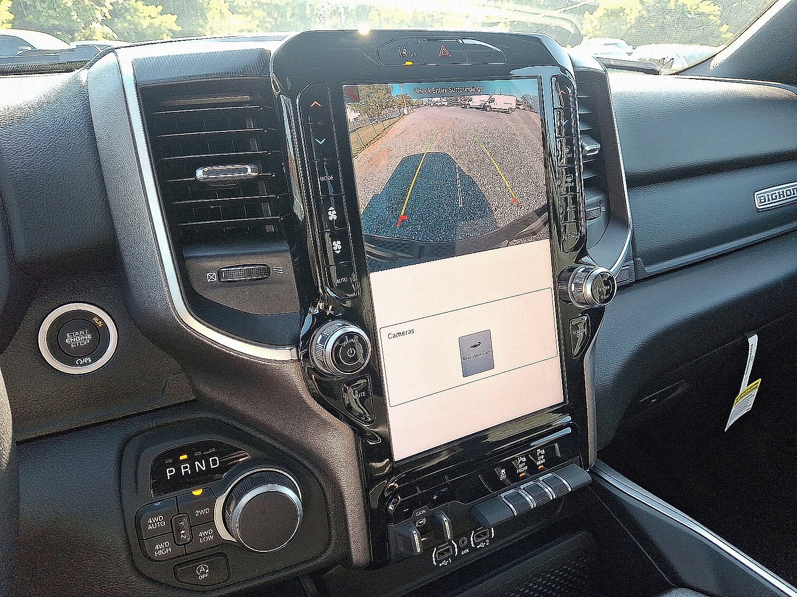 Our Big Horn cabin has been tailored to fit your needs, with the Level 2 Equipment Package's heated deluxe cloth seats, a heated leather-wrapped steering wheel, universal home remote, power adjustable pedals, power sliding rear window, dual climate control, a RAM Clean-Air System, keyless access, push-button ignition, cruise control, door-sill scuff plates, and clever cargo space, and a Uconnect® 5 with 12.0-inch touchscreen features voice control, Bluetooth®, and a nine-speaker sound system for intelligent infotainment.